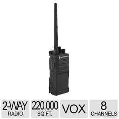 Motorola Series 2 Way VHF Radio, 2 Watt. Model RMV2080 RM. Durable and instant form of communication. It operates on 27 VHF business exclusive frequencies and is FCC Narrow band ready. It has a built in powerful 1500MW. Radio provides coverage at up to 220,000 Sq. Ft. It's rugged design and antimicrobial coating meets military specifications for sealing against dust, wind, shock, vibration and even the growth of mold and germs on the surface of the radio. Also, this radio is preassigned to receive official National Weather Service warnings, watches, forecasts and other safety information 24/7. This radio also has Advanced Voice Activation for hands-free use of your device and Channel Announcement with Voice Alias feature.