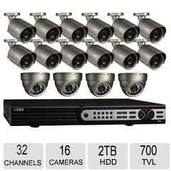 16 Camera Security System with 32 Camera DVR includes (16) Weatherproof 700 TVL Day and Night Cameras with 85 FT. Night Vision. (1) 32 Channel Digital Video Recorder with 2TB Hard Drive, connect up to 32 cameras for expanded coverage. D1 Video captures at 740 x 480 pixel resolution on all channels. (16) 700TVL High Resoluton Cameras: Capture quality video day or night with the versatility of two camera types, Weatherproof cameras for indoor and outdoor use at 30 Frames Per second recording, provides smooth, continuous and uninterrupted video with unsurpassed detail, Remote Monitoring Via Free Q-See Apps by using an iPhone, iPad, Android, and Windows Phones. Easy start up Wizard ensures quick and simple setup.