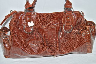 Ladies Brown Alligator / Snake Skin Design Purse / Handbag, 20"W x 18"H with Handles, Silver Accents, Side End Pockets. SRP:$ 75.00