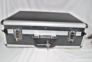 Aluminum Lightweight Travel Case, Attache, Carrying or Storage with Dual Locks & Keys. Customizable & removable foam padded interior segmented compartments, shoulder strap & carrying handle. 6" D. x 18" L. x 13" W.