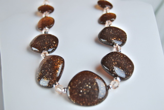 Ladies Designer 20" Amber Metallic with Crystals Necklace.