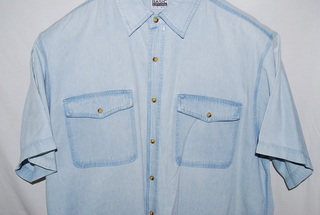 Basic Editions Stonewash Demin Men's Shirt, 2XL, Button Down Collar, Double Front Pockets, Short Sleeves, new without tags.