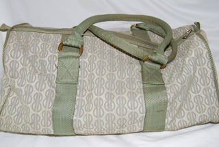 Bill Blass Designer Duffle Bag with Shoulder Strap, Water-Proof Lining with Carrying Handles. 16" H x 21"L.