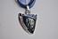 Ladies Designer Black & Blue Cloisonne Geometric Design Necklace on Blue Ribbon Rope Cord.