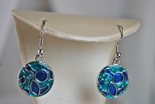 Ladies Designer Blue Cloisonne Geometric Design Pierced Earrings.