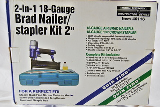 Brad Nailer / Stapler Kit 2". 2-In-1, 18 Gauge Model:# 40116. Central Pneumatic Heavy-Duty Contractor Series.