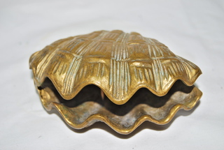 Solid Bronze Sea Shell Sculpture, Hinged Bi-Valve Design.