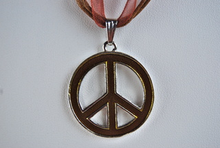 Ladies Designer Brown Peace Sign Design Necklace on Ribbon Rope Cord.