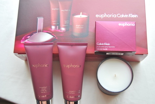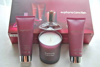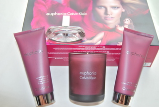 Brand New Calvin Klein Euphoria Womens Perfume Gift Set. Includes a Calvin Klein 5.75 OZ. Euphoria Fragrance Candle, 3.4 OZ Calvin Klein Euphoria Luxurious Body Lotion, Calvin Klein Euphoria 3.4 OZ. Sensual Bath & Shower Creme and Calvin Klein Euphoria .5 OZ. Perfume Spray. Great as a Gift or for Travel. Free Shipping.