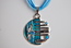 Ladies Designer Purple & Crystal Geometric Cloisonne Design Necklace on Purple Ribbon Rope Cord.
