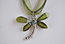Ladies Designer Green & Crystal Dragon Fly Design Necklace on Ribbon Cord.