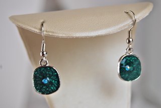 Ladies Designer Modern Blue Crystal Gemstone Design Pierced Earrings.