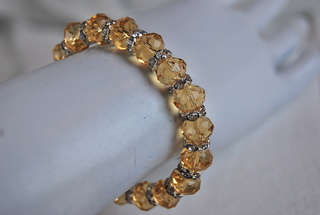 Ladies Designer Yellow Crystals & Silver Rondells Stretch Bracelet.