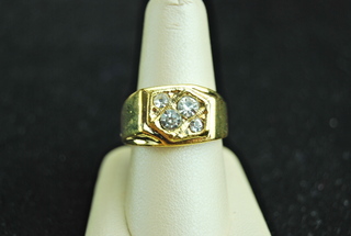 Men's Designer 18k Gold Overlay Ring with varies sized Zirconium stones in an Eternity Design. Size 12.