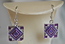 Ladies Designer Purple & Silver Square Design Pierced Earrings.