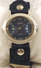 Ladies Geneva Quartz Watches, Silver Tone, Blue Nylon Band & Blue Face.