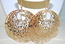 Ladies Designer Gold Tone Etched Bangle Pierced Earrings, 3 1/2" Diameter.