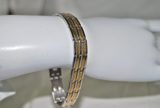 Designer 8 1/4" - 18k Gold Overlay Gold & Silver Etched Bracelet.