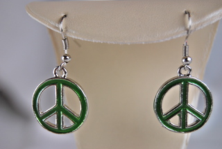 Ladies Designer Green Peace Sign Design Pierced Earrings.