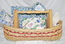 Kay Dee Designers-Carol's Country Decorative Hand Woven Picnic Basket with Wooden Spindle Handles, Burgundy Accents, Handmade in Maine, USA. Includes Cape Shore Napkins, Utencils, Pot Holders, Blueberry Printed Terry Towel. 18" Long x 9" High.