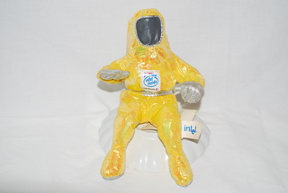 Collectable Intel Bunny Man Doll, Yellow with Silver Trim & Intel Tags. 8" H x 5" W.