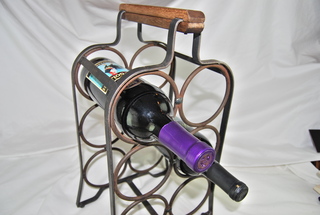 Decorative Wrought Iron Wine Rack with Wooden Handle, Holds 6 Bottles. Wine not Included.