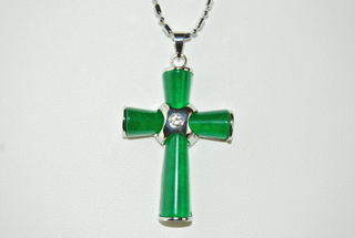 Ladies Natural "Jade" Cross with inlayed Swarvoski Crystal includes 18" Silver-tone Chain.