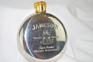 Jameson Irish Whiskey Collectable Flask.Gold and Chrome Plated with Cap. Collectors Edition, 4 Oz.