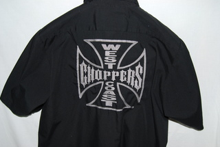 Jesse James West Coast Choppers Shirt, Size: XL, Black with Short Sleeves, Embroidered Emblems on Front, Large West Coast Choppers on back, 65% Cotton, 35% Polyester, new without tags. SRP:$ 75.00