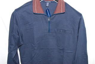 Knightsbridge Men's Pullover Jacket, Large, Brown Pinstripe Collar with Royal Blue Body, Zippered Front Pocket, 78% Cotton, 22% Polyester, Long Sleeve, new with tags.