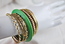 7 Piece Ladies Designer Gold with Greenwood Bangle Bracelets. Wear separately or all together.