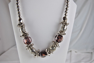 Ladies Designer 19" Red & Silver Beads Necklace.
