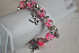 Ladies Designer with Fresh Water Pearls & Silver Charms Stretch Bracelet.