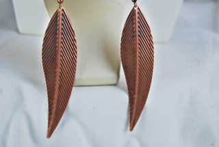 Ladies Designer Copper Metal in Leaf Shape Dangle Design Pierced Earrings.