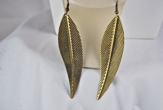 Ladies Designer Gold Metal in Leaf Shape Dangle Design Pierced Earrings. 1 1/2"W x 3" 1/2L.