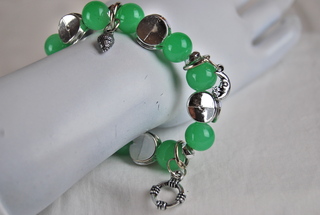 Ladies Designer with Jade, Silver Beads with Silver Charms Stretch Bracelet.