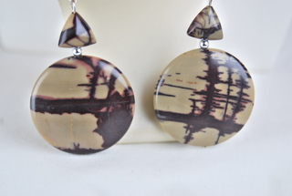 Ladies Designer Natural Jasper Gemstone in Picasso Design Pierced Earrings. 1" x 1 1/2".