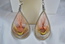 Ladies Designer Bronze, Gold and Silver Thread on Silver Braided Frame Pierced Earrings. 1 1/4" x 3".