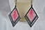 Ladies Designer Gold Metallic Thread on Black Braided Frame Pierced Earrings. 1 1/4" x 2 1/4".