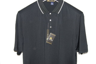 Landings Collection Men's Polo Shirt, 3XL 92% Polyester, 8% Spandex, Eco-Tech Fabric, Black with White Striped Collar, new with tags. SRP:$ 65.00