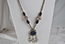 Ladies Designer 24" Tribal Design Lapis with Burnished Silver & Wooden Beads Necklace.