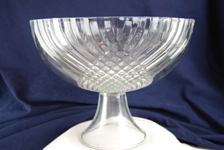 Beautiful Large Etched Crystal Bowl with Riser. 14"H. x 12"W x 10" D.