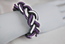Handmade Braided Black Leather with White and Purple Cord Bracelet.