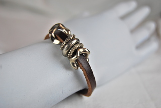 Handmade Braided Dark Brown Leather Bracelet with Silver Charms.