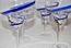 Set of Four Designer Margarita Glasses with Blue Swirl Design. 7"H x 5"W.