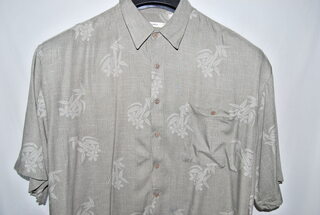 Campia Men's Designer Casual Shirt, 2XLT, Hawaiian Design, Short Sleeve, 100% Cotton, Blue with Grey and Brown Palm Leaf Design, new without tags.