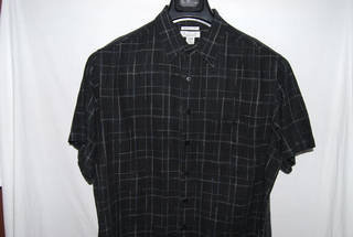 Ron & Chekeshin Men's Designer Casual Shirt, 2XL, Black with White and Silver Plaid Design, Short Sleeve, 51% Linen, 49% Rayon, new without tags, SRP:$ 75.00