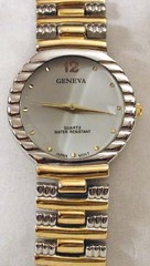 Men's Gevena Two-Tone Designer Quartz Watch with White Face.