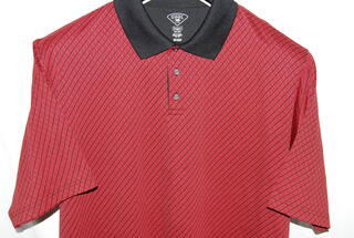 Hagger Men's Polo Shirt, 2XL, Red with Black Collar and Checker Board Design, 100% Polyester, new without tags.