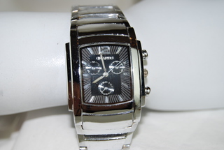 Men's Orlando Designer Silver Tone Quartz Bracelet Watch with Square Black Face.